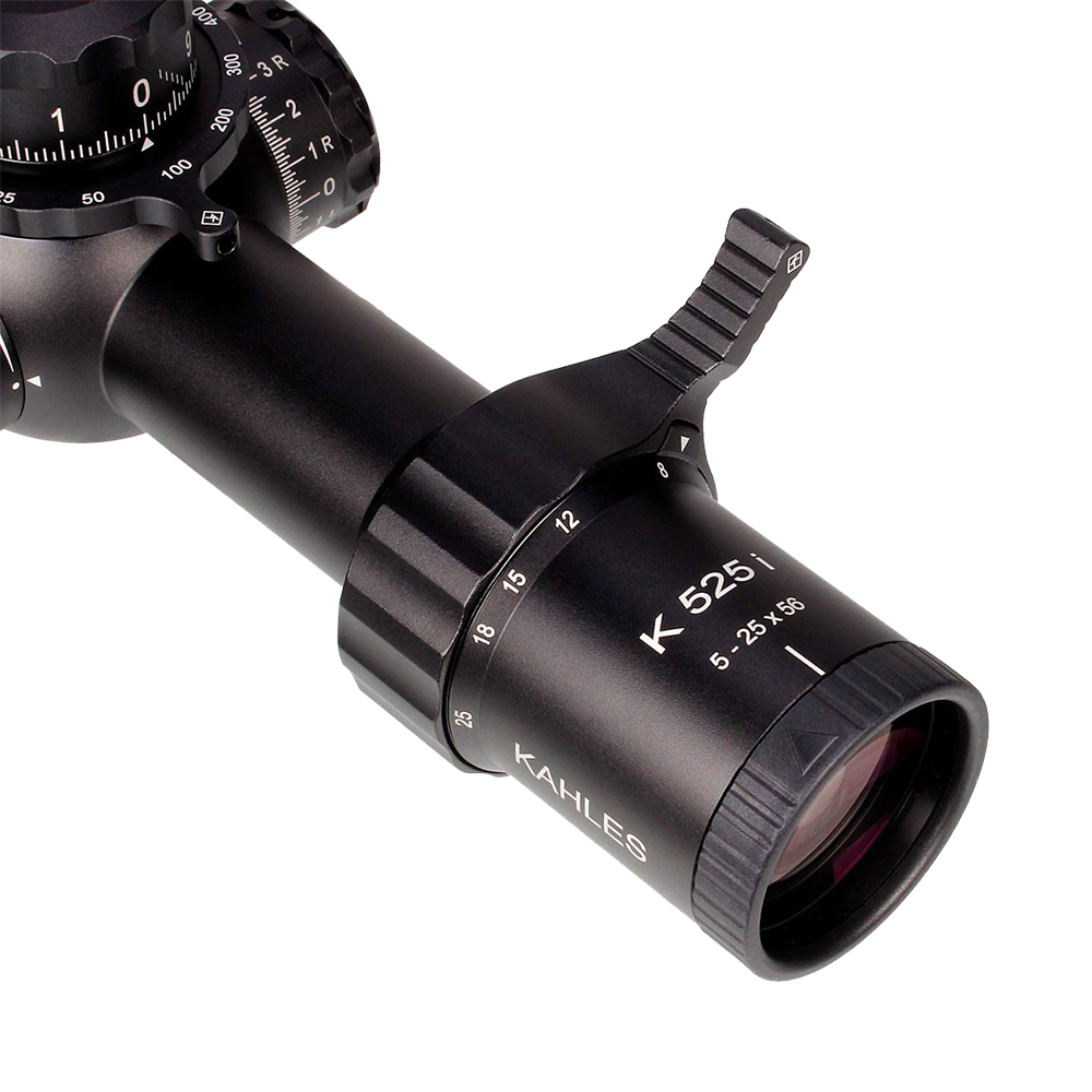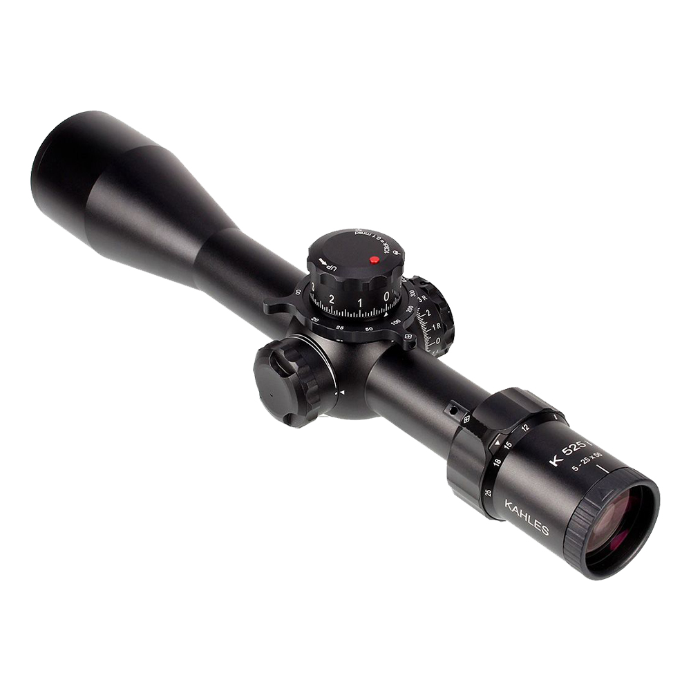 The Kahles K525i DLR is optimized for long range competition shooting. It features a widened field of view, easy to read MIL based turrets, an extra-long throw lever, and the Kahles parallax spinner. The incredibly advanced optical performance as well as ergonomics of the riflescope makes the Kahles K525i the professional choice for highest demands.