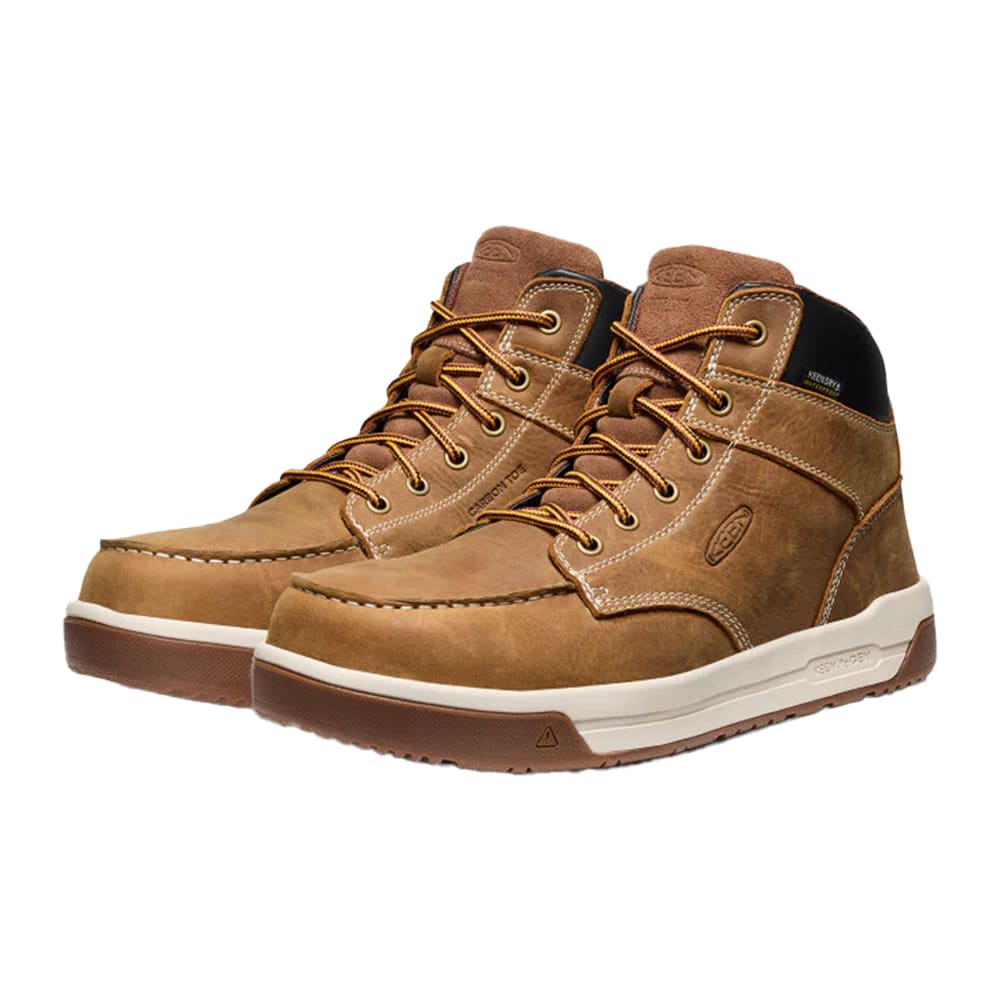Engineered for those who demand both performance and protection, the Keen Athletic Work Gibson Mid WP is the ultimate companion for the modern working man. This boot is designed to keep you moving confidently, whether you're navigating slick warehouse floors or working outdoors in unpredictable weather. The mid-height silhouette offers crucial ankle support, while the waterproof construction ensures your feet stay dry and comfortable in any environment. The unique Belgian and gum colorway adds a touch of style to your workday, and the boot's breathable materials keep your feet cool, even during long shifts. With a slip-resistant outsole, you can trust in your footing, no matter the surface. Step into a work boot that's as tough and adaptable as you are.