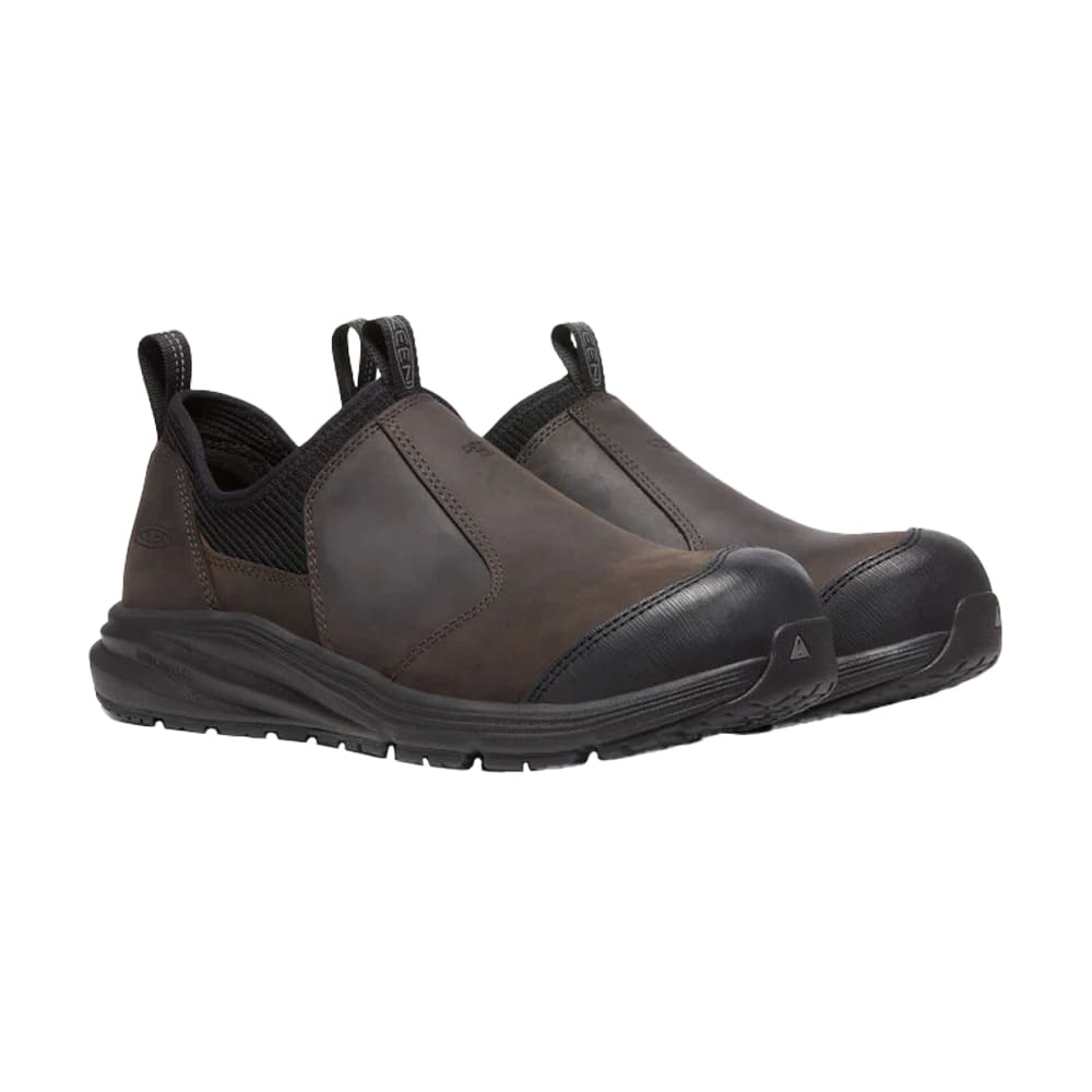 Step confidently into your workday with the Keen Athletic Work Vista Energy+ Shift ESD, engineered for professionals who demand both safety and comfort. This work shoe is designed for those who spend long hours on their feet, offering a blend of athletic performance and workplace protection. The sleek Coffee Bean and Black colorway delivers a polished, modern look, making it a versatile choice for a range of work environments. ESD protection is seamlessly integrated, making it a smart choice for those who work with sensitive electronics. The shoe's supportive construction and advanced comfort features help reduce fatigue, so you can stay focused and energized throughout your shift. With standard D and EE widths, it's tailored for a secure, all-day wear.