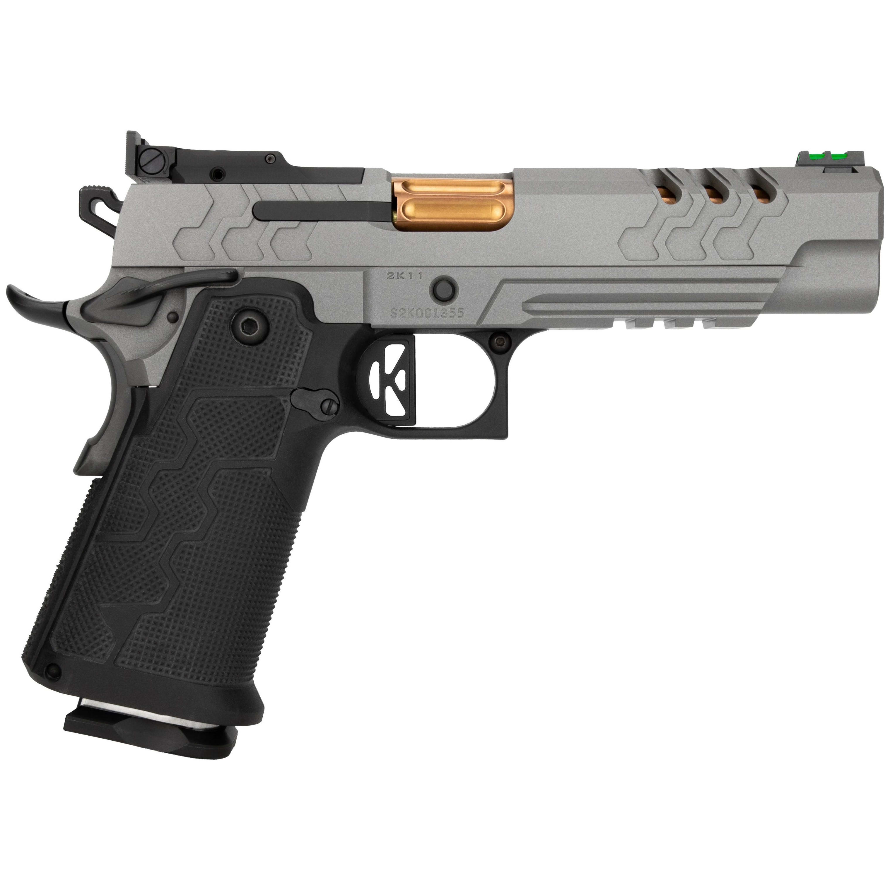 Kimber’s 2K11 is a flat-shooting, double-stack 1911 equipped with all the features Kimber enthusiasts wanted as well as all the beloved features found on the 1911 platform. The aluminum grip features aggressive checkering spanning its entire diameter, and a flared magazine well helps speed up reloads. The match-grade barrel offers a large, heavy profile with fluting and a recessed target crown. The barrel is perfectly complemented by a flat faced GT Match Grade Trigger with a crisp 3-4lb pull. Additionally, the 2K11 features custom front and rear stylized serrations and is topped with an optics cut.