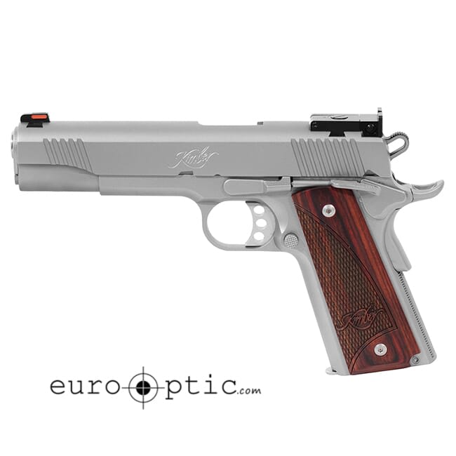 Kimber Custom II 1911 pistols combine precision craftsmanship with hair-splitting accuracy. Stainless steel match-grade barrels and bushings are held to exacting tolerances for superior consistency. High-grade internal parts deliver a lifetime of flawless performance. Full-size eye-catching grips, intricate slide serrations, and a super-smooth finish make these pistols look just as good as they shoot.