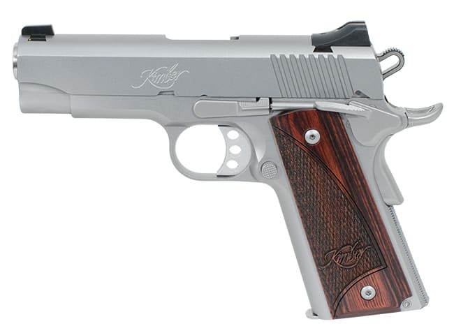Ideal for law enforcement, home defense, or concealed carry, Kimber Pro Carry II pistol combines Kimber quality with a lightweight aluminum frame and full-length grip for maximum control while shooting. A lightweight pistol ideal for carrying 24/7, this 1911-style handgun is built around a lightweight aluminum frame machined on the same computer-driven machines and to the same unequaled tolerances as Kimber steel frames. The Pro Carry II's steel slide and match grade steel 4'' bushingless bull barrel aids concealability while still delivering Kimber accuracy. Full-length guide rod. Fixed low profile sights. Synthetic grips. Extended thumb safety and beavertail grip safety for fast positive action.