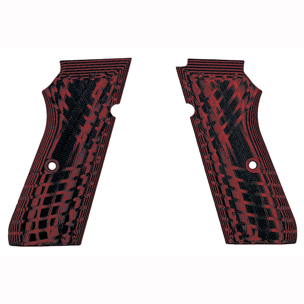 Upgrade your Kimber KDS9c with these premium pistol grips, designed to enhance your shooting experience with both style and functionality. The high-quality grips feature a very high texture, providing superior grip and control, ensuring your firearm remains steady and secure in your hands. The striking dark red and black color combination not only adds a touch of elegance to your pistol but also makes a bold statement. Constructed with durability in mind, these grips promise long-lasting performance, withstanding the rigors of regular use. Installation is a breeze, allowing you to quickly and effortlessly enhance your firearm with these stylish and functional grips.