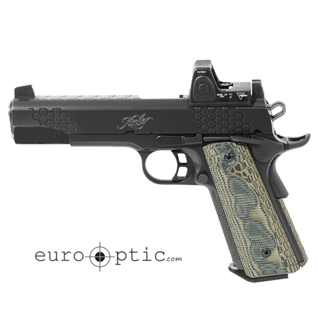 This semi-automatic Kimber 1911 KHX Custom pistol includes an installed 3.25 MOA Trijicon RMR06 Type 2 co-witnessed with suppressor height white dot sights. This 1911 pistol will be at home on the range and as your next carry pistol.