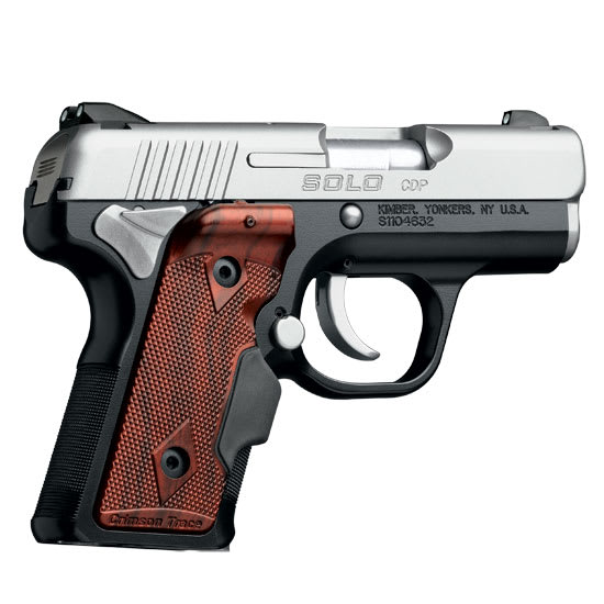 This Kimber Solo CDP (LG) 9mm Pistol features Crimson trace lasergrips, satin silver slide, KimPro II, Fixed 3-dot Tritium night sights, ambidextrous thumb safety, and a short action.
