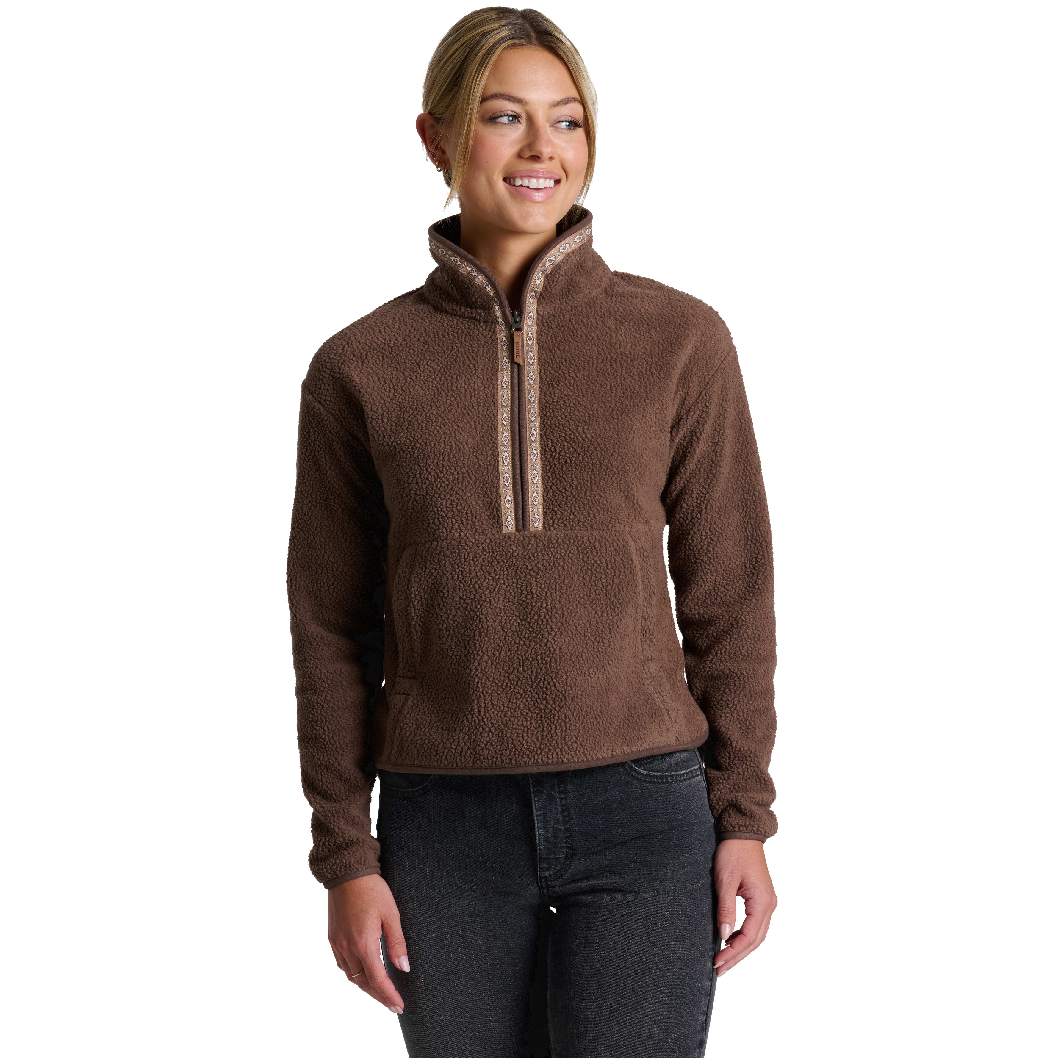 Experience the perfect blend of style and comfort with the Kuhl Hygge 1/2 Zip Fleece. Crafted for women who appreciate both warmth and versatility, this fleece is designed to keep you cozy whether you're enjoying a brisk morning walk, layering for a mountain adventure, or simply relaxing with a cup of coffee. The rich coffee hue adds a touch of sophistication to your casual wardrobe, making it easy to pair with your favorite jeans or leggings. The half-zip design not only offers a modern look but also allows you to adjust your comfort level with ease, making it a practical choice for changing weather or active days. Tailored for women, it offers a flattering, easy fit that moves with you. The Kuhl Hygge 1/2 Zip Fleece is your go-to for effortless layering and everyday comfort, wherever your day takes you.