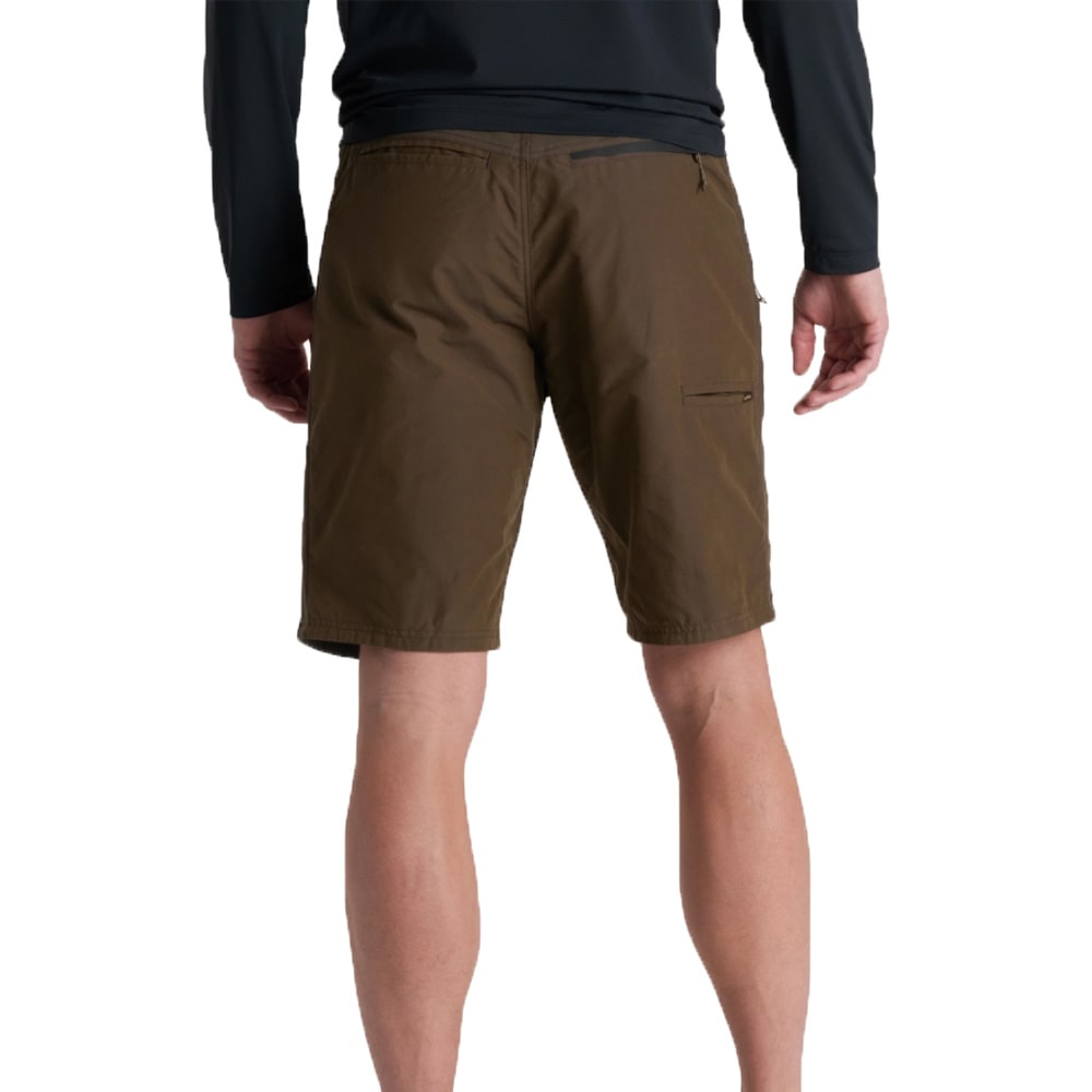 The KÜHL Radikl Outsider Short Shorts in Espresso are rugged, high-performance outdoor shorts designed to handle trails, travel, and everyday adventures with ease. Built with an ultra-tough wax-coated Dynawax™ ripstop fabric that resists wind and water while offering UPF 50+ sun protection, these shorts balance durability with comfort. Stretch panels in key mobility zones help improve movement and breathability, and multiple secure pockets keep your essentials close at hand. Designed to sit at the natural waist to upper hip with a 10 in inseam, they deliver a versatile and comfortable fit for active use or casual outings. Their construction and fabric blend remain the same across all Radikl Outsider Short sizes.
