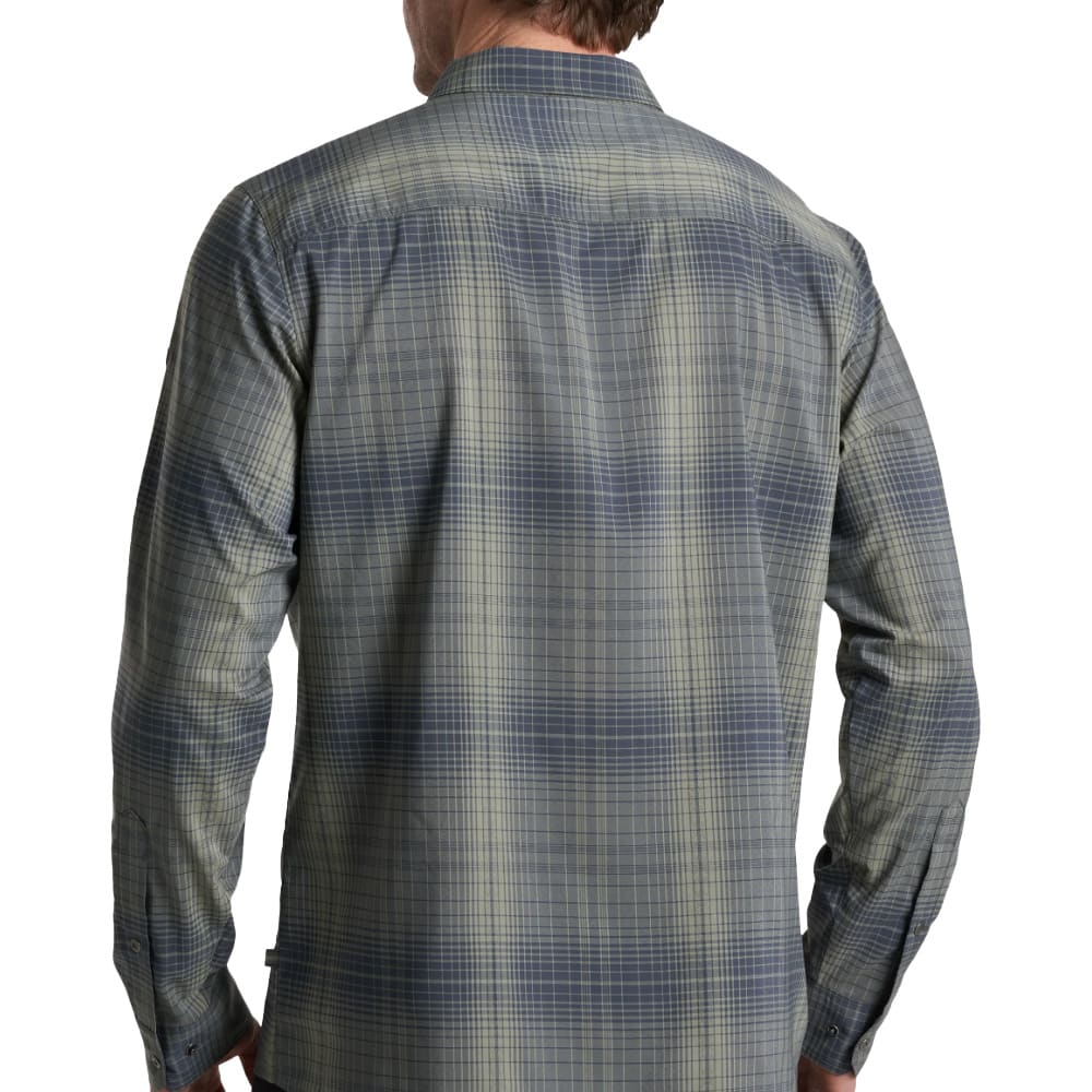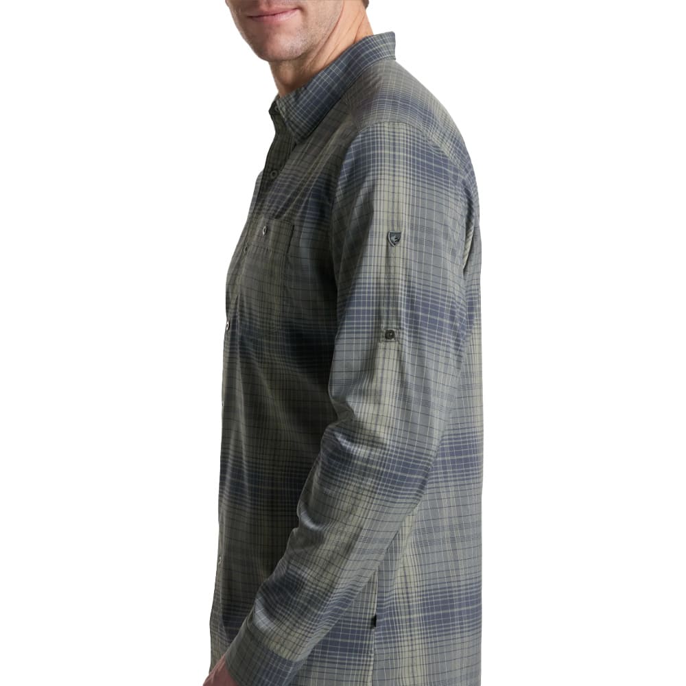 The KÜHL Response Long Sleeve Shirt in Hurricane Grey is an ultra-lightweight performance button-down designed for warm weather and active outdoor use. Built from a breathable, quick-dry polyester fabric with moisture-wicking and odor-resistant properties, this shirt offers superior comfort on hikes, travel days, or casual outings. It features 2-way mechanical stretch for freedom of movement, UPF 30 sun protection for extended outdoor wear, and wrinkle-resistant construction for easy care. The design also includes a single chest pocket, a hidden security pocket, and a built-in lens cloth for glasses.
