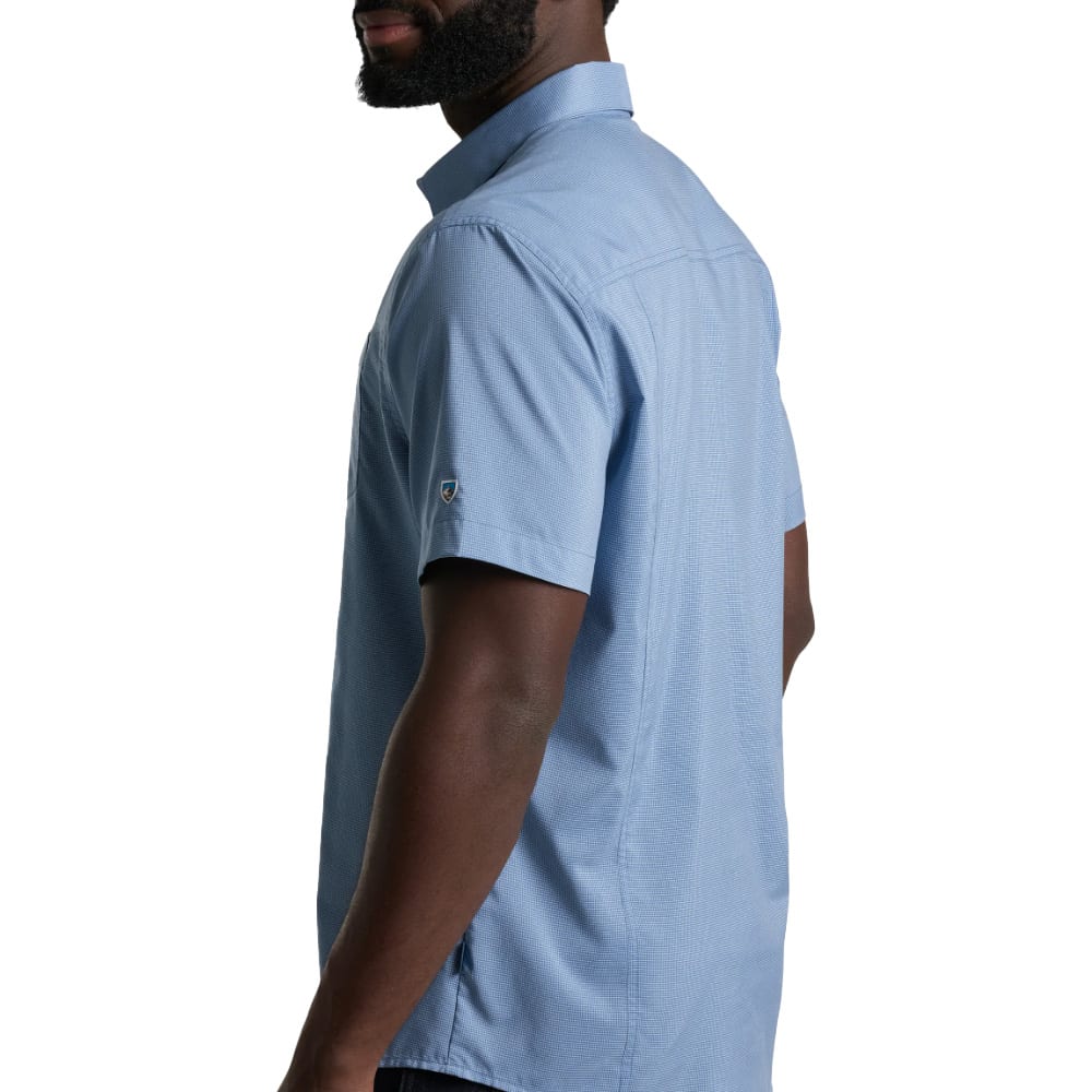 The KÜHL Stealth Short Sleeve Shirt in Shoreline is an ultra-lightweight outdoor button-up designed for hot weather and active use. It features quick-dry, moisture-managing performance fabric with odor resistance and UPF 30+ sun protection to keep you cool and protected during activities like hiking, travel, or everyday wear. Built with two-way mechanical stretch for enhanced mobility and a convenient snap-up front, this shirt also includes two angled chest pockets plus a hidden interior security pocket for practical storage. The wrinkle-resistant construction helps it look sharp straight from the pack.