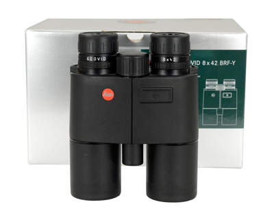 This used Leica Geovid 8x42 Yards Binocular is in good condition with light usage marks. Includes lens cover, neck strap, and comes in its original box. Does not include case.
