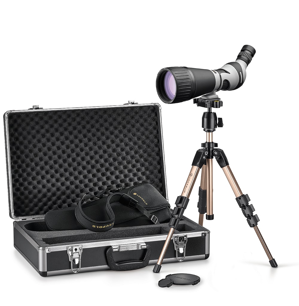 At the range or in the field, the SX-2 Kenai® 2 delivers spotting in impressive high definition. Available with either a straight or angled eyepiece, the SX-2 Kenai 2 features a 25-60x magnification range and an 80mm HD objective lens that delivers a bright image with exceptional color reproduction and resolution. All external lenses are treated with Leupold’s exclusive GuardIon coating which allows water to run off and fingerprints to be removed with ease. Because this coating is applied at the molecular level, it will last for the life of the spotting scope. The eyepieces have twist-up eyecups and non-critical eye relief which provide extra comfort during extended spotting sessions and if the sun is high, the integrated retractable lens shade can be used to reduce glare.
