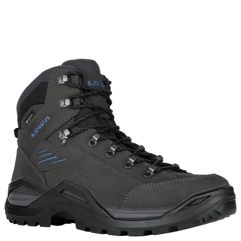 Engineered for the adventurous spirit, the Lowa Renegade Evo GTX MID boots are the ultimate companion for tackling challenging trails and unpredictable weather. Designed for men who demand both performance and style, these boots blend advanced outdoor technology with a modern, athletic look. The innovative Gore-Tex lining keeps your feet dry and comfortable, no matter the conditions, while the supportive midsole and rugged outsole ensure stability and grip on rocky, muddy, or uneven terrain. The anthracite and steel blue colorway adds a touch of sophistication, making these boots as visually striking as they are functional. Whether you're embarking on a multi-day hike or a quick trek, the Renegade Evo GTX MID delivers the comfort, protection, and durability you need for every outdoor pursuit.