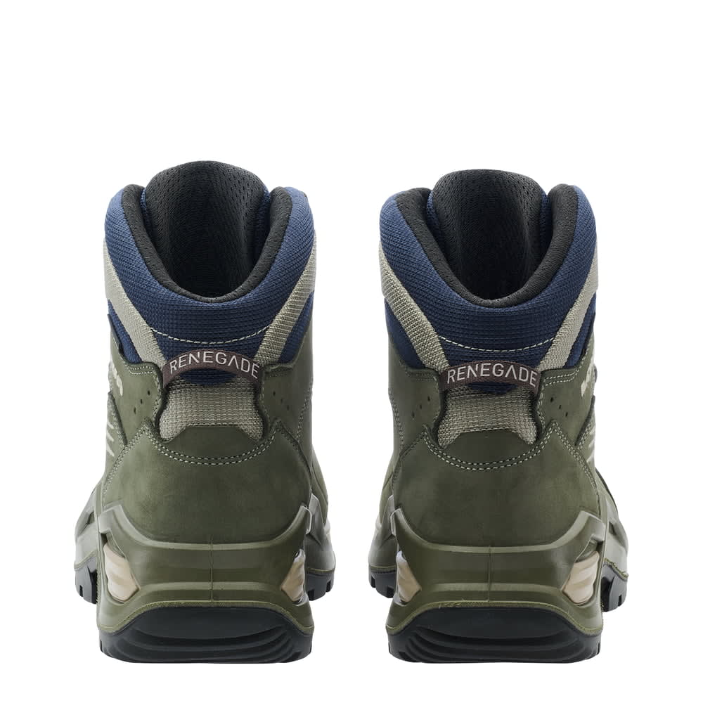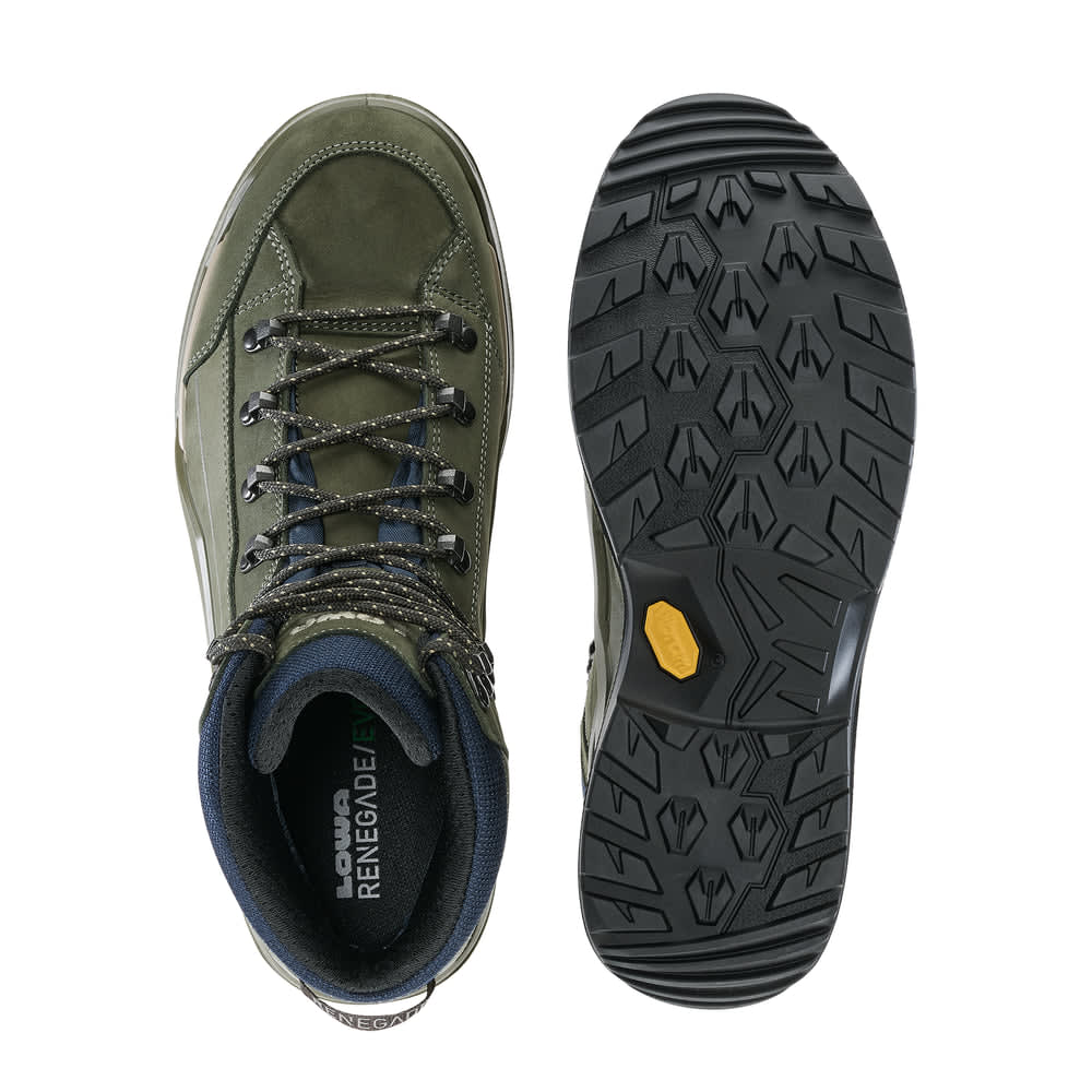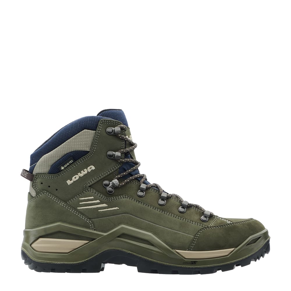 Engineered for the modern adventurer, the Lowa Renegade Evo GTX MID boots blend rugged durability with advanced comfort, making them the perfect companion for demanding trails and unpredictable weather. The olive and navy colorway offers a distinctive, outdoorsy look, while the mid-height design provides the ideal balance of ankle support and freedom of movement. Whether you're trekking through wet forests, rocky paths, or muddy trails, the Renegade Evo GTX MID ensures your feet stay dry and comfortable, thanks to its advanced waterproof and breathable Gore-Tex lining. The robust build and cushioned midsole deliver lasting support for long days on your feet, while the non-slip outsole offers the confidence to tackle a variety of terrains with sure-footed traction. Designed for those who refuse to compromise on performance or comfort, these boots are your ticket to exploring the outdoors with confidence.