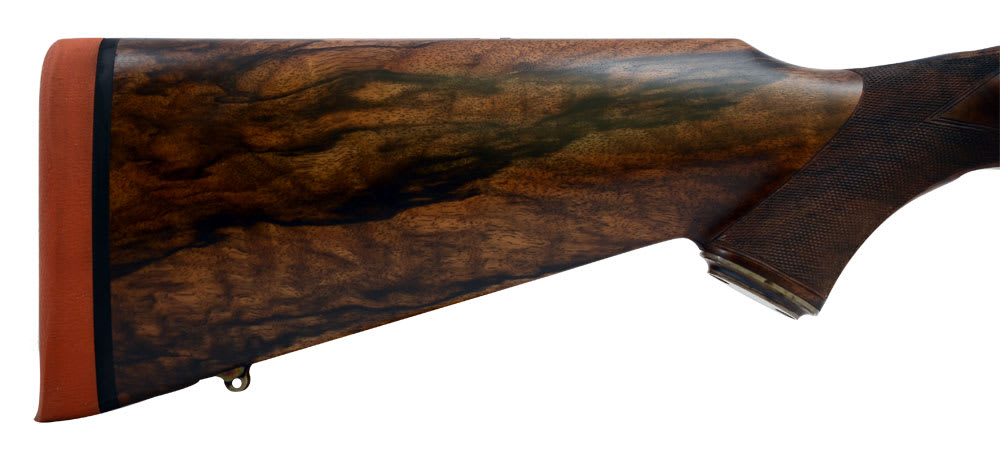 Exhibition grade Turkish walnut stock and forend, hand rubbed oil finish to a velvet sheen.