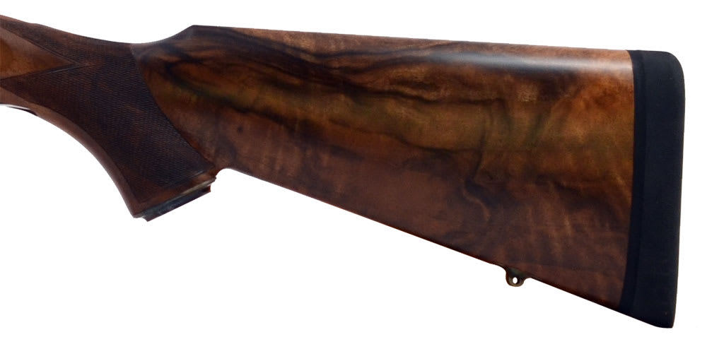 Exhibition grade Turkish walnut stock with hand rubbed oil finish to a velvet sheen.