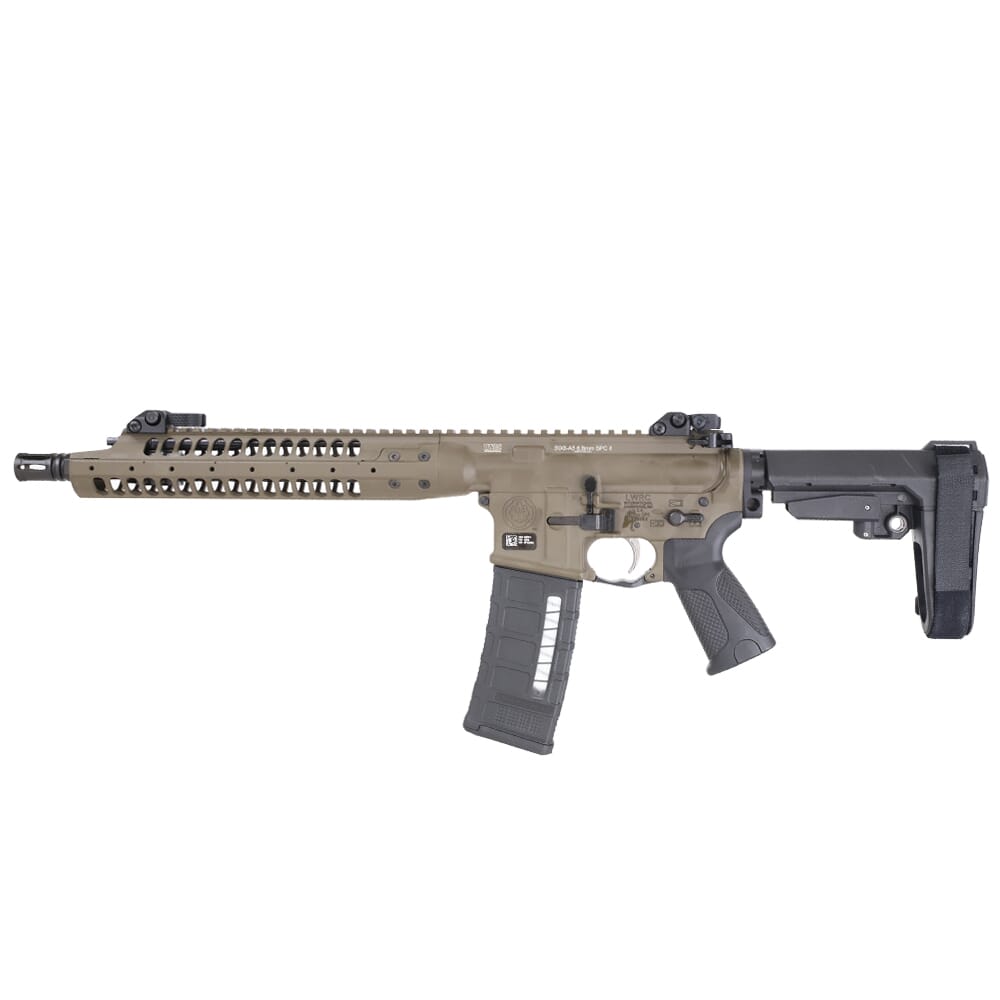 The LWRCI’s Six8-A5 was developed as a part of the Enhanced Rifle Cartridge program intended to address the terminal performance deficiencies associated with the 5.56x45mm NATO cartridge. As the name implies, the Six8-A5 is chambered in the 6.8x43mm SPC II, a cartridge said to bridge the lethality gap between 5.56 and 7.62 NATO rounds by utilizing a heavier projectile for more energy on impact. One of the problems faced by the 6.8mm cartridge was a lack of reliable magazines, to solve this, LWRCI partnered with Magpul to create a magazine specifically intended for the 6.8mm round, and designed the Six8 family of weapons around said magazine. The magazine itself is reminiscent of the standard P-MAG such as its curved shape and texture, but features a slightly wider body and strengthened walls. Other features of the Six8-A5 have been optimized for use with the 6.8mm cartridge as well. This is evident in the enlarged ejection port, an Advanced Combat bolt calibrated for 6.8mm, and feeding geometry designed around the 6.8mm round’s dimensions.