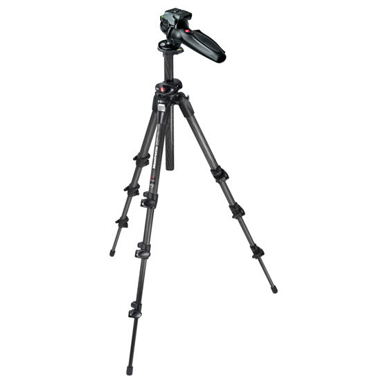 This rigid and compact Manfrotto carbon fiber tripod features 100% carbon fiber tubes, magnesium die castings, Q90° center column system, and an integrated leveling bubble.