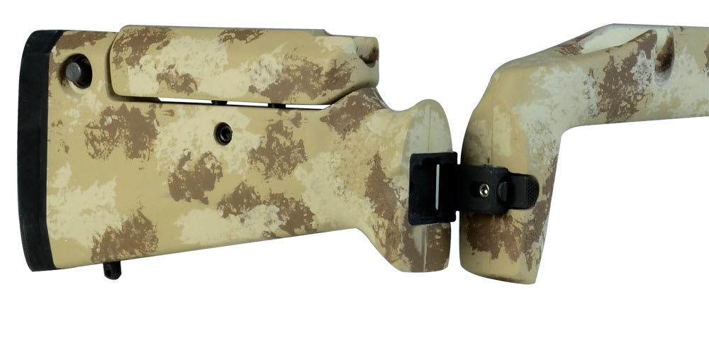 This molded desert Manners T1F stock is based on Remington 700 SA BDL Varmint firearms.