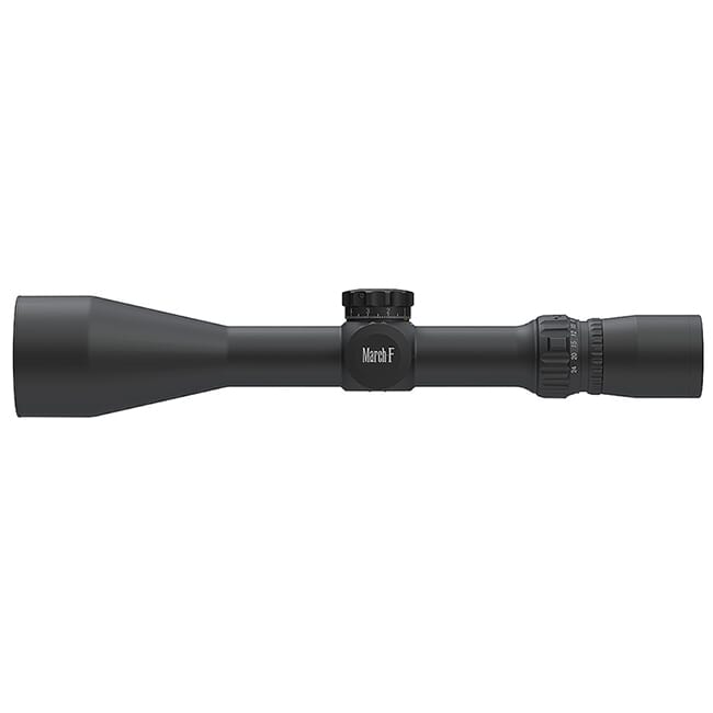 The March-F 3-24x52 Tactical Riflescope is the go to scope for both long range hunters and tactical shooters all over the world. The scope has a large 52mm objective lens made of extra low dispersion optical glass that allows for a bright and clear sight picture even as the sun sets. The scope features tactical exposed turrets for windage and elevation, parallax correction from 10 yards to infinity, and a tactical reticle in the first focal plane.