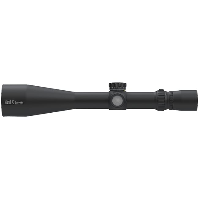 The March-FX 5-40x56 Tactical Riflescope is built truly for tactical long range shooting. The scope is built on a robust 34mm tube and features a 56mm objective to maximize light transmission. Additionally, the March-FX riflescope features extra low dispersion optical to help ensure a clear and bright image. The March-FX 5-40x56 Tactical Riflescope features a detailed first focal plane reticle designed for precise long range shooting as well as exposed windage and elevation turrets for fast adjustments in the field.