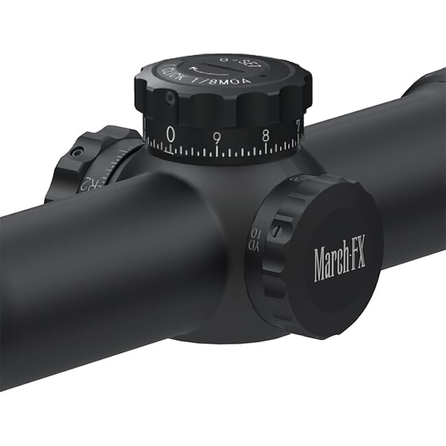 The March-FX 5-40x56 Tactical Riflescope is built truly for tactical long range shooting. The scope is built on a robust 34mm tube and features a 56mm objective to maximize light transmission. Additionally, the March-FX riflescope features extra low dispersion optical to help ensure a clear and bright image. The March-FX 5-40x56 Tactical Riflescope features a detailed first focal plane reticle designed for precise long range shooting as well as exposed windage and elevation turrets for fast adjustments in the field.