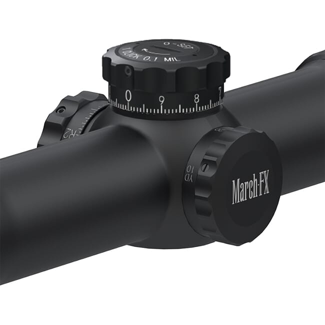 The March-FX 5-40x56 Tactical Riflescope is built truly for tactical long range shooting. The scope is built on a robust 34mm tube and features a 56mm objective to maximize light transmission. Additionally, the March-FX riflescope features extra low dispersion optical to help ensure a clear and bright image. The March-FX 5-40x56 Tactical Riflescope features a detailed first focal plane reticle designed for precise long range shooting as well as exposed windage and elevation turrets for fast adjustments in the field.