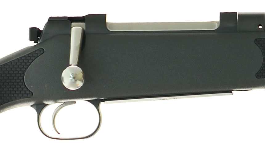 The high-density, shatter-proof and noiseless synthetic stock features black non-slip elastomer inlays. The sling swivel can be found on the tip of the fore-end. Also a bi-pod adapter can be attached to the fore-end.