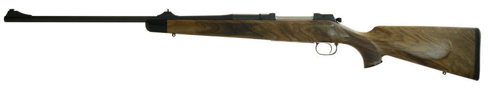 As a classic, solid rifle with modern functions and qualities the M 03 fulfills highest requirements in terms of safety, shooting performance, trigger characteristics and resilience. The Basic M03 design reveals a keen sense for shape and detail: the classic walnut stock (wood grade 2) features a black fore-end tip, thoroughly cut fish scale checkering, cheekpiece and recoil pad. Barrel, action, steel sights and smaller parts are plasma nitrided and thus highly protected against corrosion.