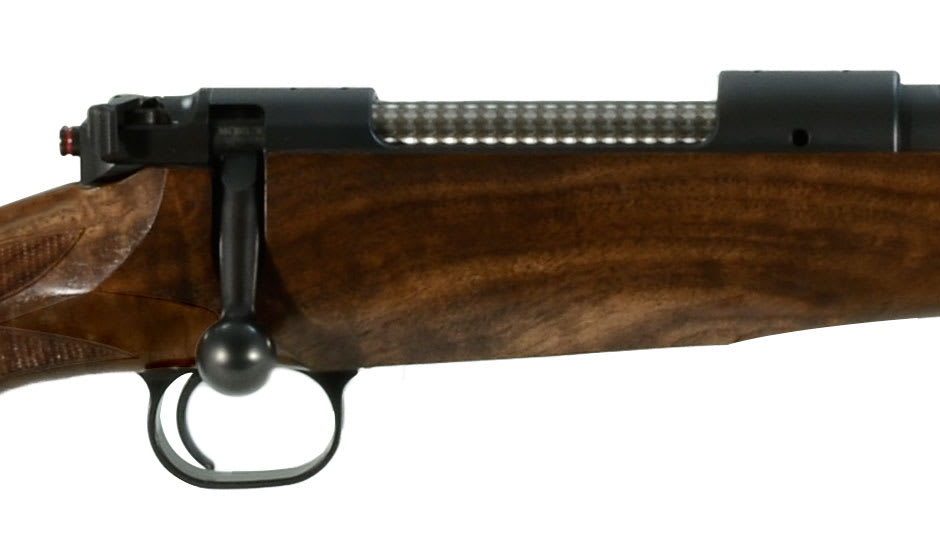This Mauser M12 .300 Win Mag rifle with a 24.75" barrel features a wide loading bench, steel construction, a smooth bolt movement, classic stock shape, "Prince of Wales" pistol grip, direct trigger, 3-position safety smooth roll safety, short bolt lift, detachable zigzag magazine, an anti-slip bolt handle, and the Mauser coat of arms.