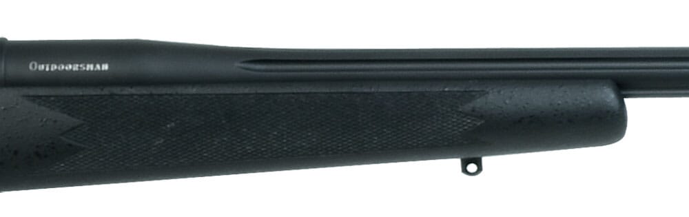 The McMillan Outdoorsman .338 Laupa magnum was created for hunting in hard-wind environments with large distances. The Outdoorsman features flat trajectory, a black finish, a fluted match grade barrel to enhance balance, and an integral muzzle to reduce recoil.