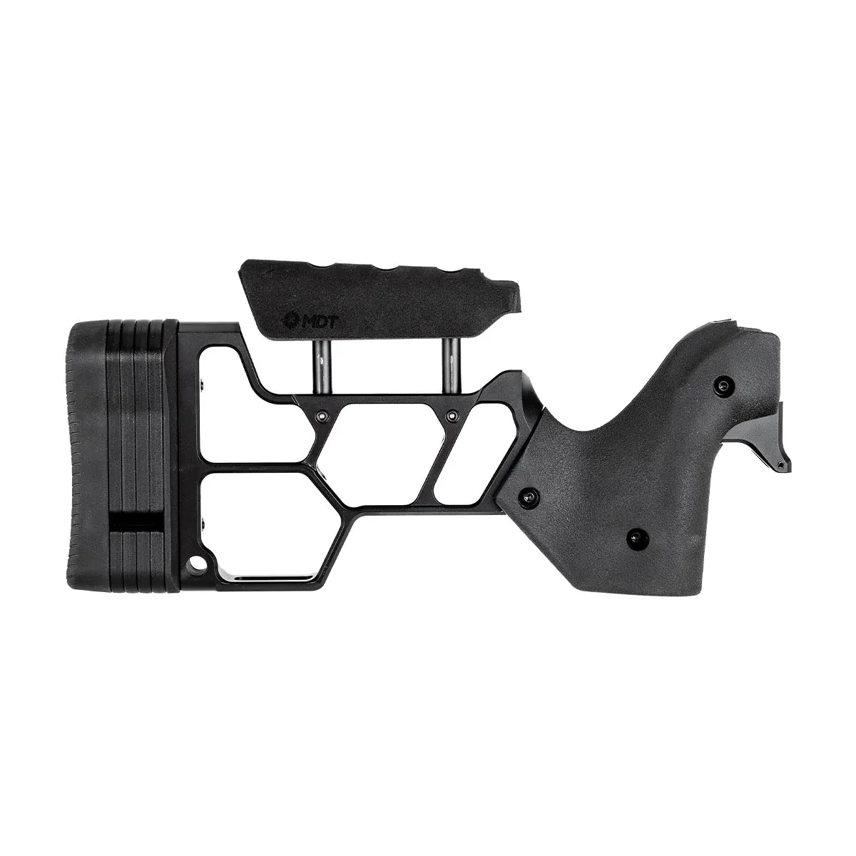 The MDT LSS Gen3 Black Traditional Buttstock is a high-quality rifle aft component designed to pair the ergonomic comfort of a classic stock with the modular backbone of MDT’s LSS Gen3 chassis system. Finished in a durable matte black, this traditional-style buttstock provides a familiar shoulder-to-cheek interface and intuitive handling while maintaining the adjustability and precision benefits of a modern tactical chassis. Its overmolded rubber grip and strategically contoured surfaces enhance control and comfort in diverse weather and shooting conditions, and it integrates seamlessly with the LSS Gen3 for a stable, solid platform. Ideal for hunters and precision shooters who prefer the feel of a conventional stock without sacrificing the adaptability of a chassis system, the LSS Gen3 Traditional Buttstock delivers balanced ergonomics and dependable performance.