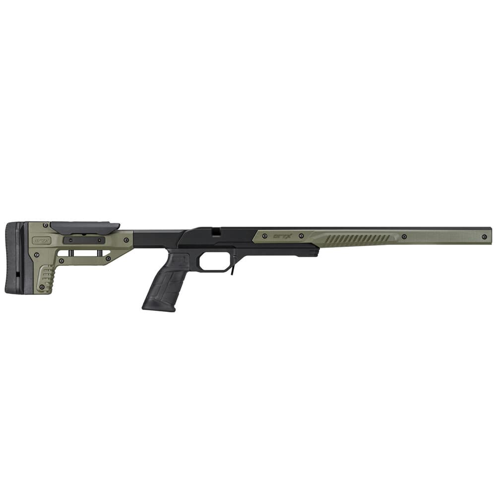 MDT’s Oryx Chassis System is designed for individuals who want to turn a factory rifle into a long range precision rifle. Ideal for PRS, hog hunting, coyote hunting, and any other shooting application involving extreme accuracy at long range, the Oryx Chassis System delivers a more solid connection between you and your rifle. The action is bedded on a aluminum block to create a rigid and stable foundation, and the barrel is free floated – together, these features greatly improve accuracy. To ensure superior ergonomics, the Oryx Chassis System’s stock is fully adjustable. Length-of-pull can be finely adjusted via spacer system, and an adjustable cheek piece promotes proper alignment between the shooter’s eye and a mounted optic. The Oryx’s ergonomics can be further improved thanks to AR15 compatible grips, enabling the user to tap into the vast aftermarket of grip options. Furthermore, the Oryx is compatible with ARCA rails, and a features a section under the foregrip for installing MLOK accessories.