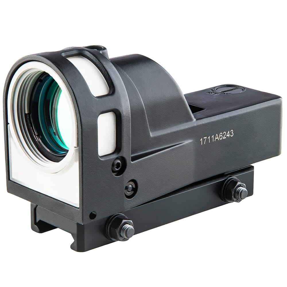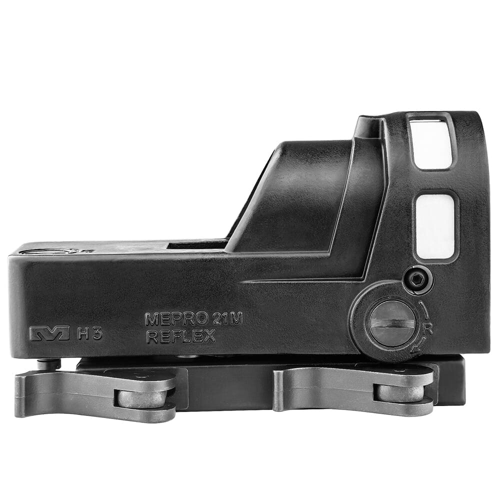 Mepro takes red dot sights to the next level with the M21! This advanced sight was developed for the IDF, and is highly suited for close-quarters or in situations where the use of both eyes is critical. The M21 functions without batteries, and provides illumination with a system of fiber optics and tritium. The fiber optic collectors on the top and front of the sight illuminate the reticle in daylight conditions, while the self-powered tritium illuminates the reticle in the dark. Transition between the two illumination systems is seamless, and is always available without any switches or external sources of power. In addition, the M21 is available in the following reticles: Bullseye, Triangle, Open X, or a dot reticle in either 4.3 MOA or 5.5 MOA.