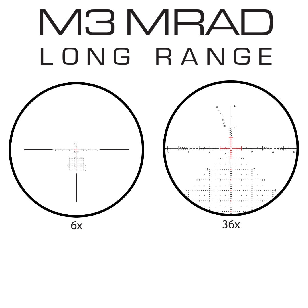 New for 2025, the Meprolight MVO 6-36x56 Riflescope delivers excellent accuracy at extreme range. It comes equipped with a glass etched, first focal plane M3 MRAD reticle. This reticle configuration paired with the broad magnification range makes the MVO 3-18x44 well suited for a wide variety of hunting and shooting scenarios. Other features include exposed turrets and a throw lever.