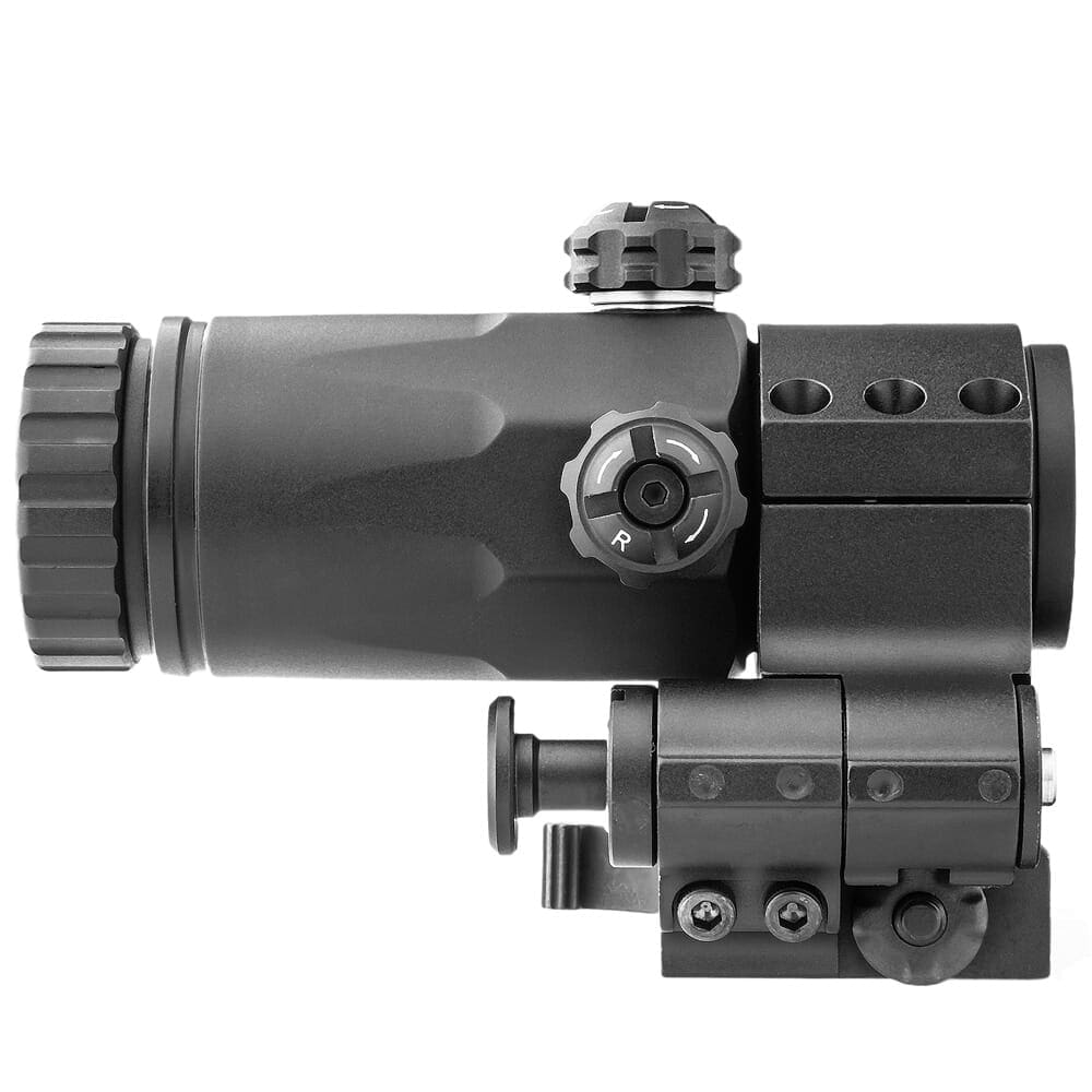 Meprolight’s MX3 series of magnifiers are an ideal option for extending your accurate shooting range. The MX3 is compatible with virtually any red dot sight and folds to the side when not in use, allowing to use the red dot to engage targets at close range. For targets at extended distances, the MX3 can instantly deploy and provide 3x power magnification without the need to re-zero the red dot. The MX3 is available in two configurations: the MX3-T & MX3-F. The MX3-T uses a pull-back mechanism while the MX3-F uses a push button – both of which can be adapted for left or right handed use. Like all of Meprolight’s premium optics, the MX3 utilize high-transparency glass and are built to withstand shocks, impacts, and sustained recoil.