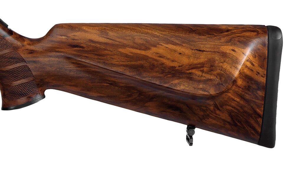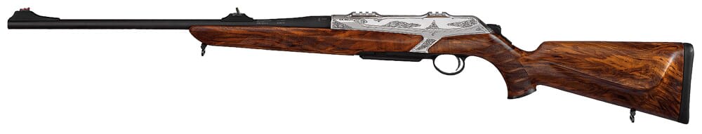 The Merkel Helix with a classic arabesque engraving and highly-durable aluminum action assembly. The elegance of the engraving is matched by the high-grade wood stock. The bolt handle is located directly above the trigger for ease of release. The picatinny rail with the universal mounting base allows for almost any scope to be added. Similar to all Helix models, the Arabesque can be dismantled in 3 easy steps.