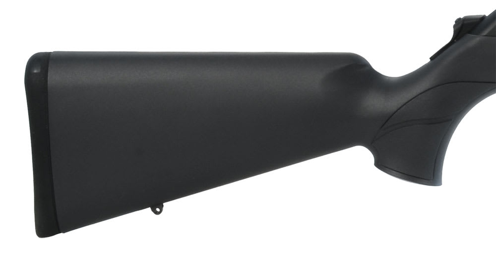 This Merkel RX Helix Explorer .223 Remington rifle features a non-slip, shock-dampening synthetic stock, straight buttstock with rubber recoil pad, universal fore-end, and an integrated pistol grip element with thumb indent.