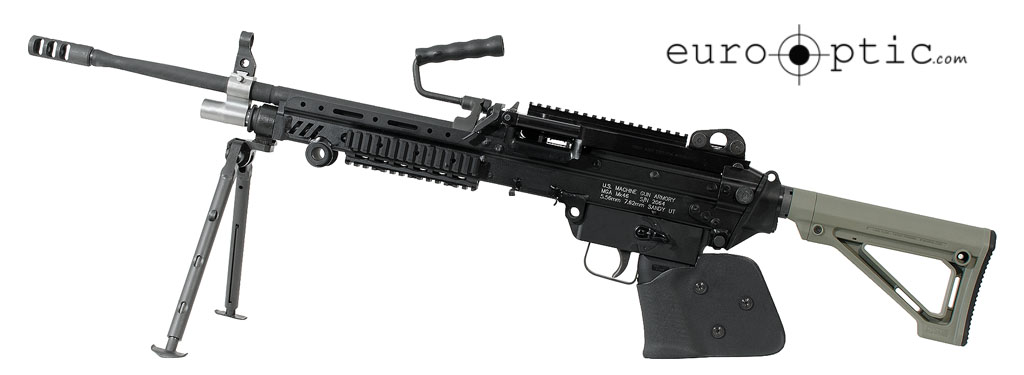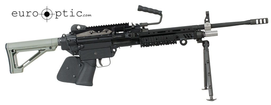 Since 1984 there have been zero product improvement programs for the SAW. MGA has taken this rifle and brought it into the 21st century. They have also taken their experience from this endeavor and applied it to the civilian market. The result of that undertaking is this MK46. It is a closed-bolt semi-automatic rifle featuring an AR-style fixed butt stock, bipod, railed top cover with iron sights, and MOD 0 feed tray. This rifle is also a caliber convertible system with the purchase of separate conversion kits. If you have ever dreamed of owning a belt fed rifle you need not wait another day.