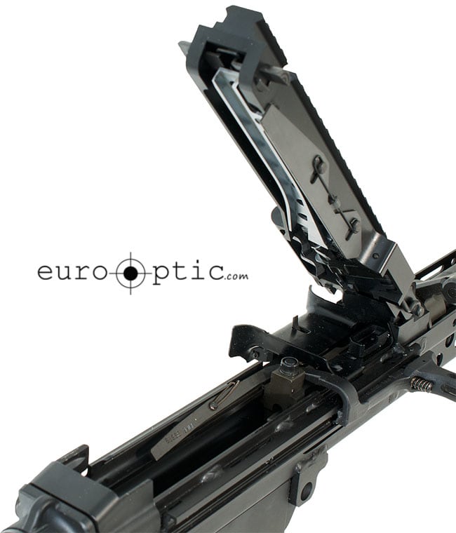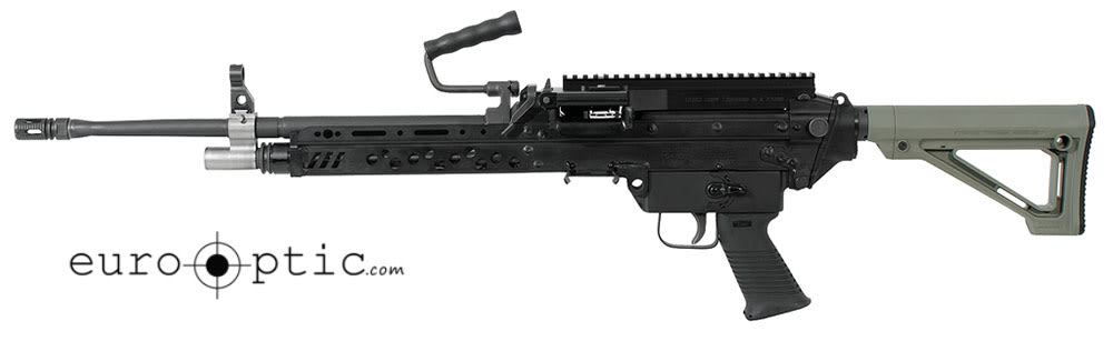 The MGA MK46 is a closed-bolt civilian legal belt fed rifle. Machine Gun Armory is a purpose driven company that has taken on the challenge of improving the militaries belt fed light machine guns. Since 1984 there have been zero product improvement programs for the SAW. MGA has taken this rifle and brought it into the 21st century. They have also taken their experience from this endeavor and applied it to the civilian market. The result of that undertaking is this MK46. It is a closed-bolt semi-automatic rifle featuring an AR-style fixed butt stock, railed top cover and MOD 0 feed tray. This rifle is also a caliber convertible system with the purchase of separate conversion kits in 7.62x51, .300 blackout and .260 Remington. If you have ever dreamed of owning a belt fed rifle you need not wait another day.