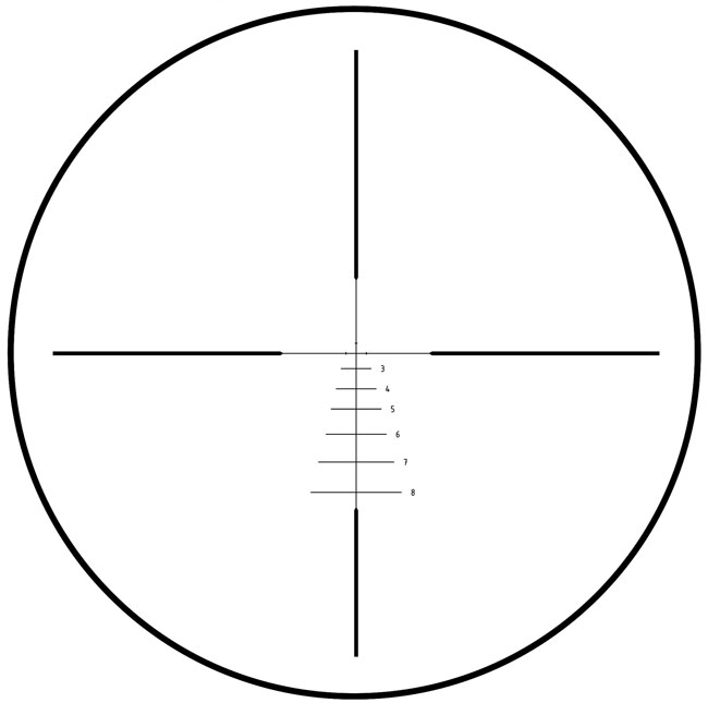 This Minox ZX5 3-15x56 scope with BDC reticle features a large field of view, special optical high-tech glass, sharpness and clarity in low light situations, M* multi-coating, 1/4 MOA elevation and windage adjustments, shock and scratch resistant aluminum housing, comfortable variable power adjustment, quick adjusting ocular, argon gas, and waterproof/fogproof internal lenses.
