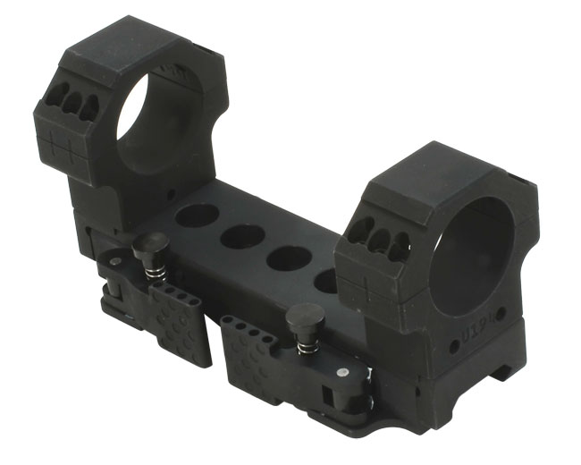 This Eurooptic modular dual lever quick detach 30mm Mount has a weight of 6 ounces and an overall length of 5".