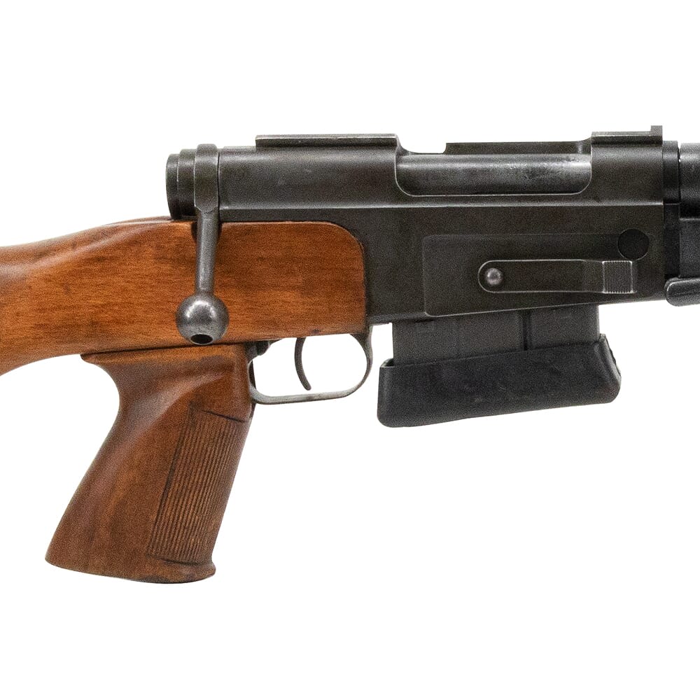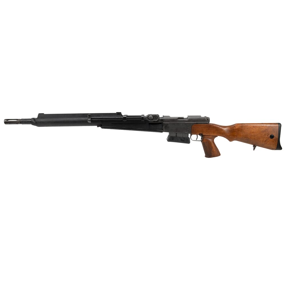 Mechanically, the FR F2’s action is identical to the French military’s primary rifle of WWII, the MAS-36. The bolt utilizes dual rear locking lugs, a sizable flat spring extractor, and a fixed ejector – this elegantly simple configuration makes disassembly/assembly quick and easy, and ensures utmost reliability even in harsh conditions. To promote superior accuracy, the FR F2 employs a free floating barrel which is topped with a proprietary muzzle device that can be finely tuned to the user’s preference. One of the FR F2’s more notable features is a distinctive thermal shield that covers the barrel and part of the receiver. This was specifically chosen to conceal the weapon from night vision and thermal devices that would otherwise detect the heat generated from firing multiple shots. The thermal shield is also used to alleviate the mirage caused from heat dissipating off the barrel. The FR F2 also includes a unique integrated bipod, which attaches to the rifle by a sleeve that sits over the barrel. This bipod structure allows the rifle to effectively “hang” from the bipod instead of “sitting” on the bipod, and allows for some degree of swivel movement. Other features of the FR F2 include a wide, flat bottomed surface on the handguard, allowing the rifle to be braced on a surface. All FR F2 rifles sold by EuroOptic are decommissioned models used by the French government, and may show some signs of wear but are 100% fully functional.