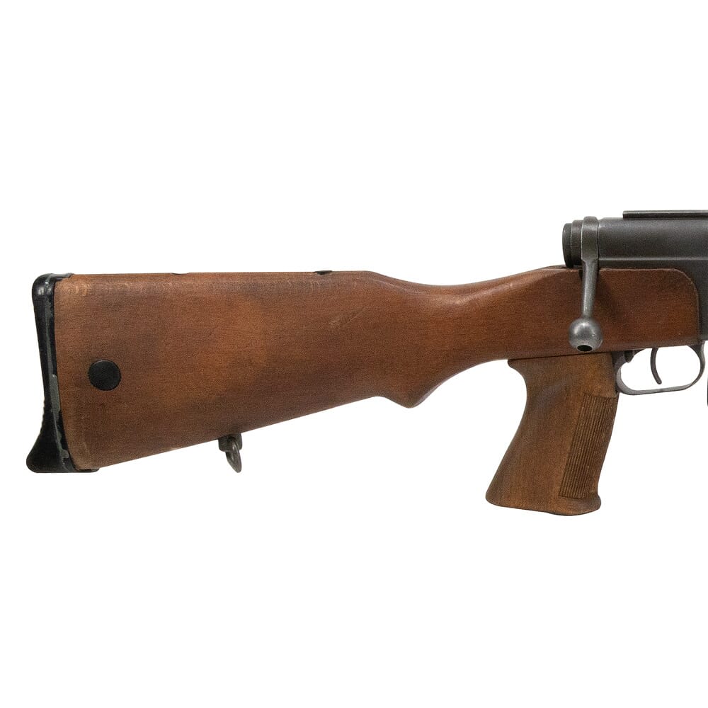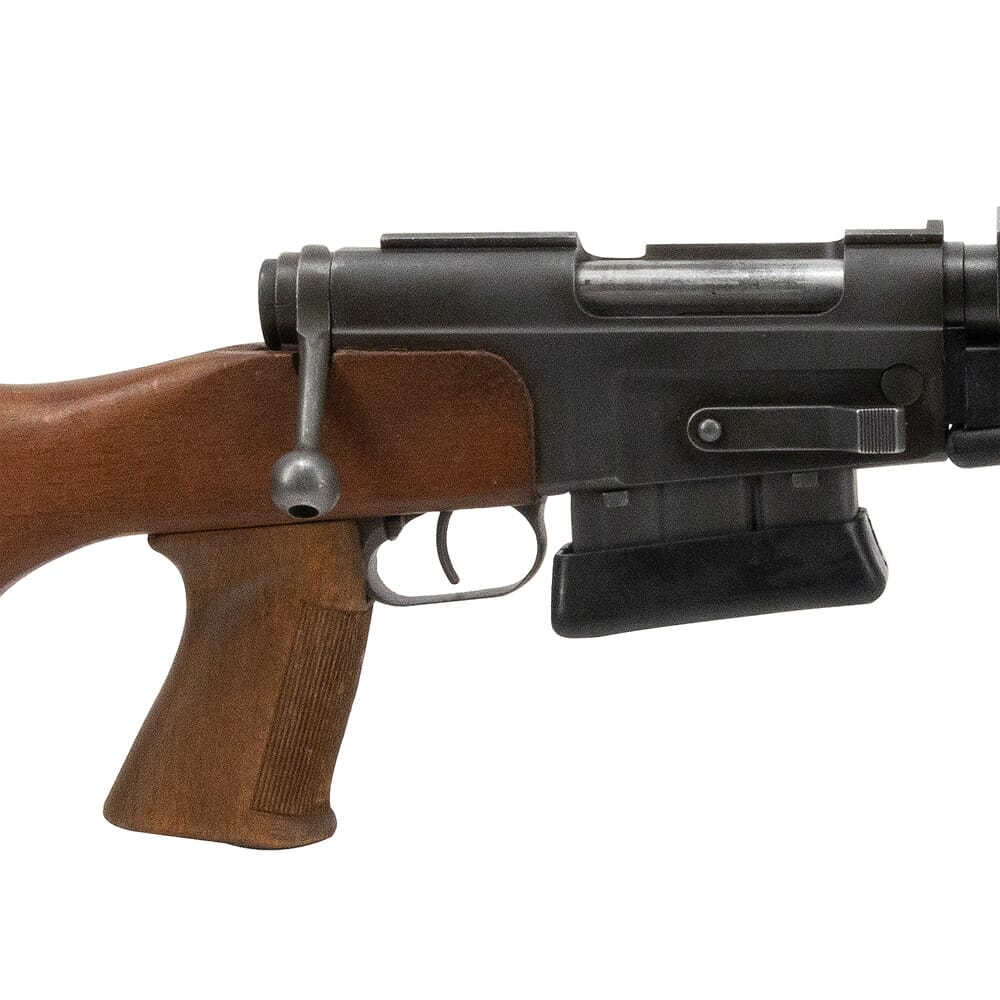 Mechanically, the FR F2’s action is identical to the French military’s primary rifle of WWII, the MAS-36. The bolt utilizes dual rear locking lugs, a sizable flat spring extractor, and a fixed ejector – this elegantly simple configuration makes disassembly/assembly quick and easy, and ensures utmost reliability even in harsh conditions. To promote superior accuracy, the FR F2 employs a free floating barrel which is topped with a proprietary muzzle device that can be finely tuned to the user’s preference. One of the FR F2’s more notable features is a distinctive thermal shield that covers the barrel and part of the receiver. This was specifically chosen to conceal the weapon from night vision and thermal devices that would otherwise detect the heat generated from firing multiple shots. The thermal shield is also used to alleviate the mirage caused from heat dissipating off the barrel. The FR F2 also includes a unique integrated bipod, which attaches to the rifle by a sleeve that sits over the barrel. This bipod structure allows the rifle to effectively “hang” from the bipod instead of “sitting” on the bipod, and allows for some degree of swivel movement. Other features of the FR F2 include a wide, flat bottomed surface on the handguard, allowing the rifle to be braced on a surface. All FR F2 rifles sold by EuroOptic are decommissioned models used by the French government, and may show some signs of wear but are 100% fully functional.
