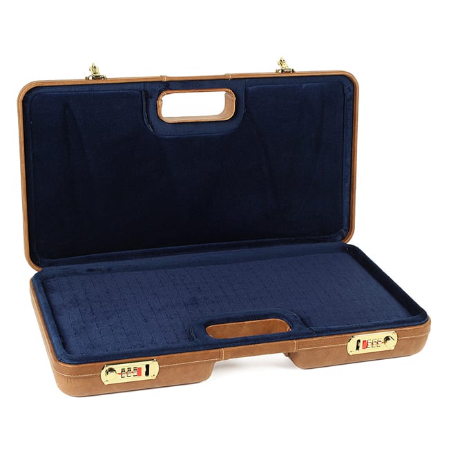The Negrini 2027LX Luxury Two Handgun Case is a perfect fit for anything from an subcompact pistol to a large framed revolver (18.25" Long inside capacity). The fully padded interior with pluck-n-pull foam allows you to perfectly fit it to your handgun, magazines, and accessories. The exterior of the case is tobacco brown leather while the inside sports a rich blue finish.
