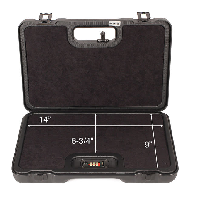 This Negrini Discreet Carry Case holds one handgun. Made from ABS, this air travel certified case features pluckable die cut foam, two combination locks, and a black interior and exterior.