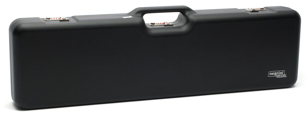 This Negrini Case holds one 30" over-under or side-by-side medium rib shotgun and four barrels. This shotgun case is made from durable ABS and features a black exterior and blue interior.