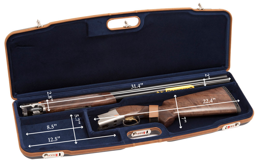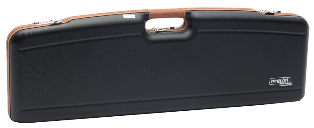 This Negrini shotgun case fits one 31-3/8" side-by-side or over-under shotgun. Features include a black ABS hardcase exterior and a blue interior.