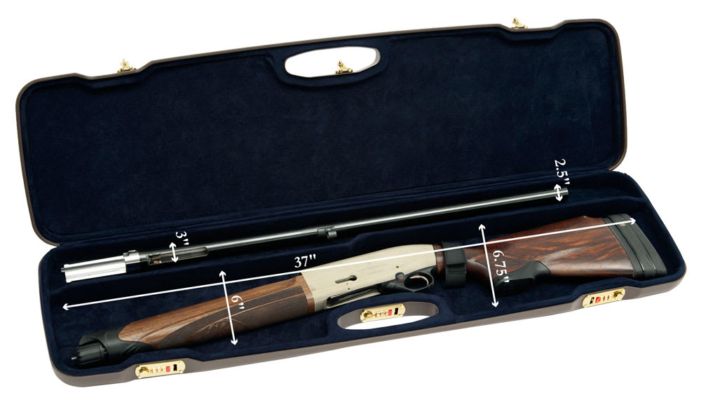 Fit one 36" semi-automatic or pump shotgun in this durable Negrini Case made from ABS. Features include a brown exterior and a blue interior.