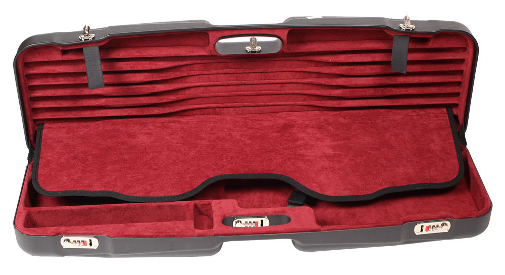 This Negrini Tube Set Case fits one 33.7" high rib sporting firearm. Features include a black exterior and bordeaux interior.