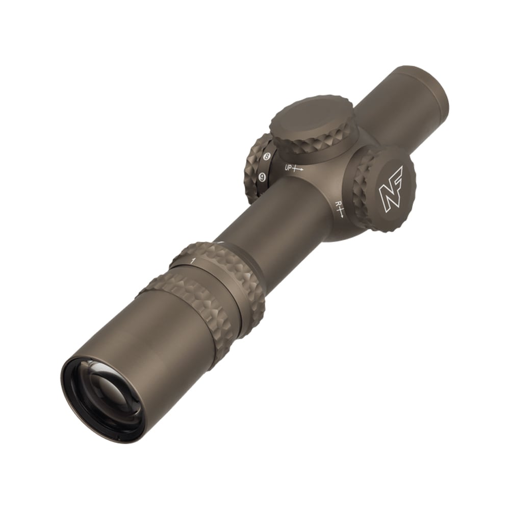 The Nightforce ATACR 1-8x24mm F1 is the ultimate low-power variable optics. Featuring daylight bright illumination and a true 1x magnification setting, users get all of the functions of a red dot while also being able to zoom to 8x. The FC-DMx intelligent reticle offers shooters precise holds at distance and a simple red dot solution for close targets. The low-profile capped turrets, compact size, and streamlined profile make this the perfect optic for competition as well as duty use.